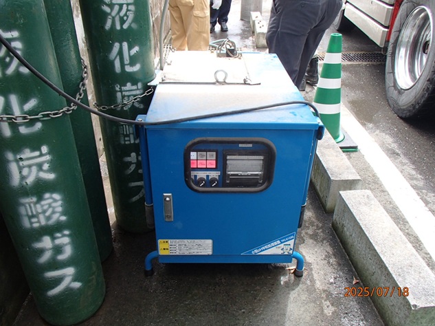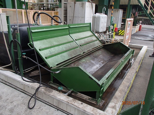 屋根付き付着防止剤塗布場(ダンプ昇降設備あり)使用済み付着防止剤はヤード内で回収